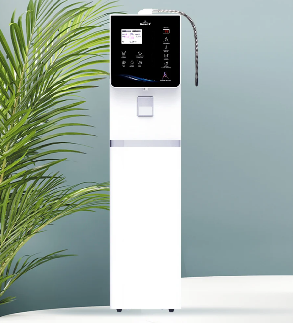 Vòi nước điện giải xoay 360° & vòi nước nóng thông minh - lạnh được trang bị cho việc lấy nước tiện lợi, nhanh chóng. Hệ thống điều khiển cảm ứng trên mặt phủ kính với màn hình LCD tinh tế, mang đến cảm giác thanh lịch, hài hòa cho không gian sống thêm phần sinh động, giao diện hiển thị thân thiện cho người dùng dễ dàng sử dụng. Sản phẩm không chỉ là máy lọc nước điện giải chất lượng mà còn là thiết bị nội thất sang trọng, đẳng cấp của mọi nhà.