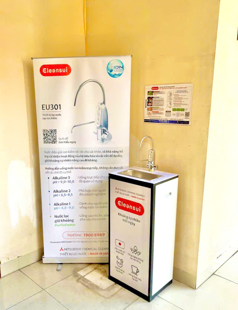 Vừa qua , Showroom ION Center và hãng Mitsubishi Cleansui (Nhật Bản) đã kết hợp cùng Sở Kế hoạch và đầu tư Tỉnh Bắc Ninh lắp đặt trải nghiệm máy tạo nước điện giải Mitsubishi Cleansui EU 301 đến từ Nhật Bản dành cho cán bộ công chức, viên chức làm việc tại cơ quan Sở được sử dụng nước ION Kiềm tươi giàu hydrogen hàng ngày. Với mục tiêu: nâng cao chất lượng nguồn nước uống có tính kiềm để cân bằng độ pH cho cơ thể, giàu khoáng chất và hydrogen trong nước nhằm cải thiện, nâng cao và chăm sóc sức khỏe cho cán bộ, nhân viên làm việc tại Sở.